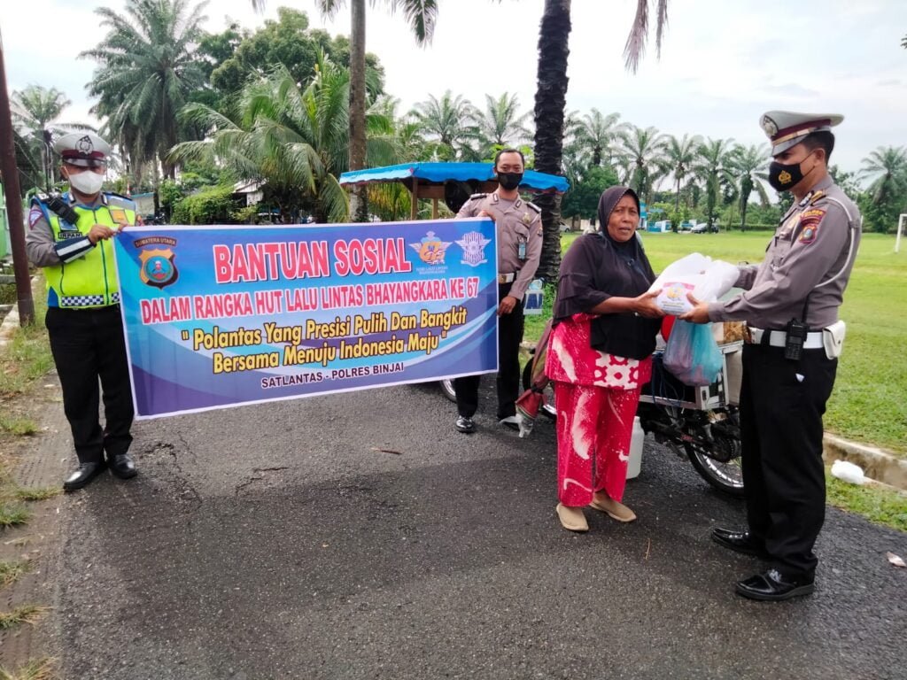 Dalam rangka menyambut hari Lalu Lintas ke 67 yang jatuh pada tanggal 22 September 2022, Sat Lantas Polres Binjai membagikan sembako kepada masyarakat penguna jalan yang melintas di jalan Sultan Hasanuddin kecamatan Binjai Kota, Sabtu (17/9/2022) sekira pukul 11.00 Wib.