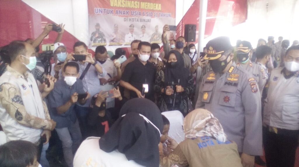 Pada hari pertama, ada 5 sekolah yang dilaksanakan vaksinasi merdeka secara serentak, yakni SDN 020252 di Binjai Barat, SDN 020267 Binjai Kota, SDN 026619 Binjai Selatan, SDN 024772 Binjai Timur, dan SDN 020273 Binjai Utara.