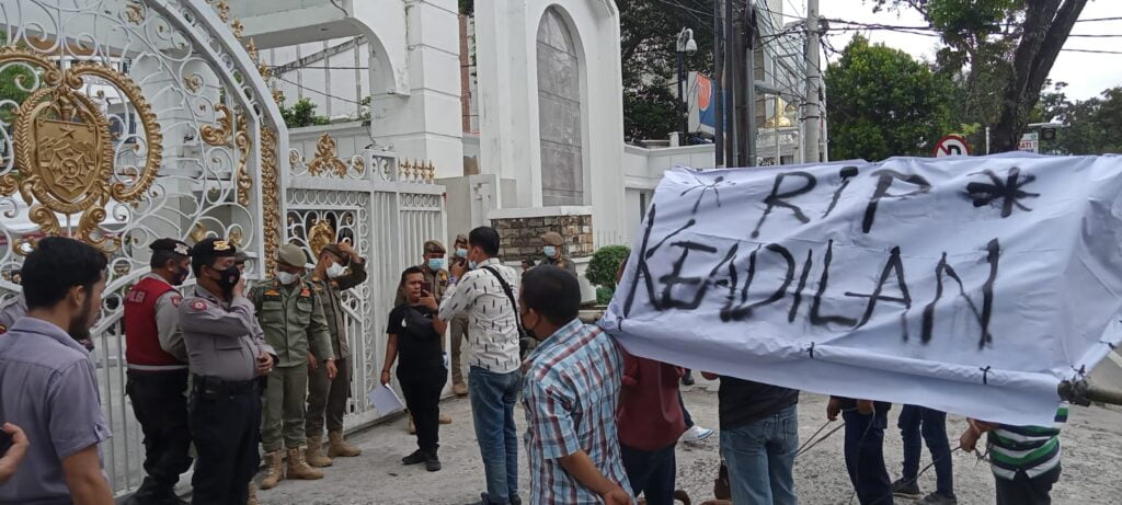 Sementara itu, puluhan masyarakat dan mahasiswa beranjak dari kantor Gubsu dan mengarah ke Kantor Kejatisu untuk menggelar aksi demo. (Rel/Dea)